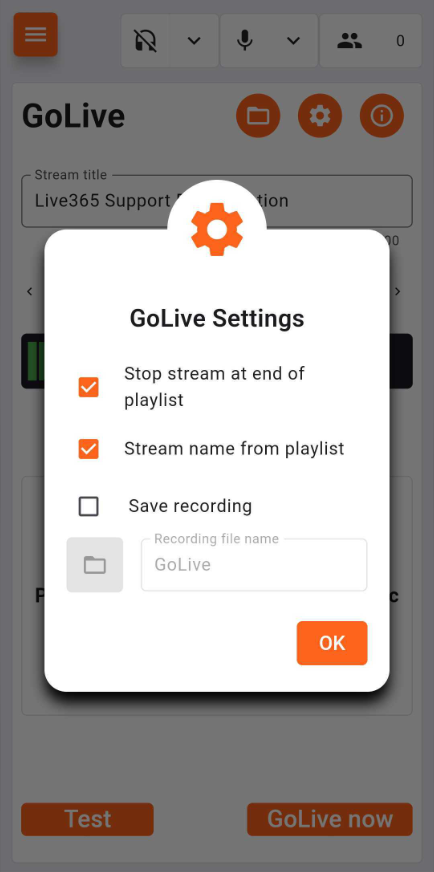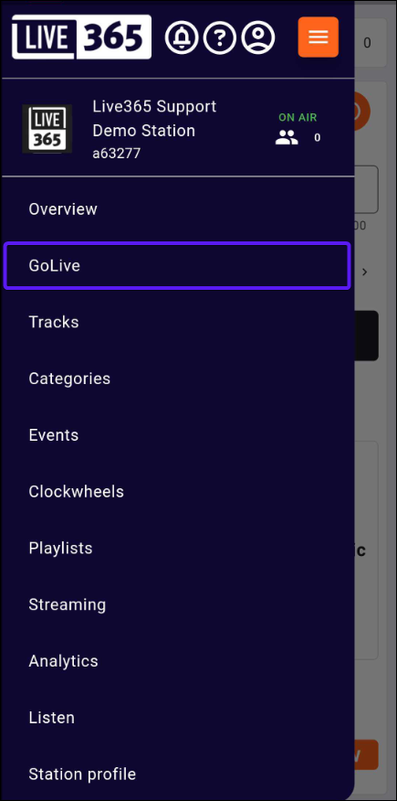 The GoLive feature in the Live365 Broadcaster mobile app allows you to stream live talk and music from your mobile device directly to your Live365 station.