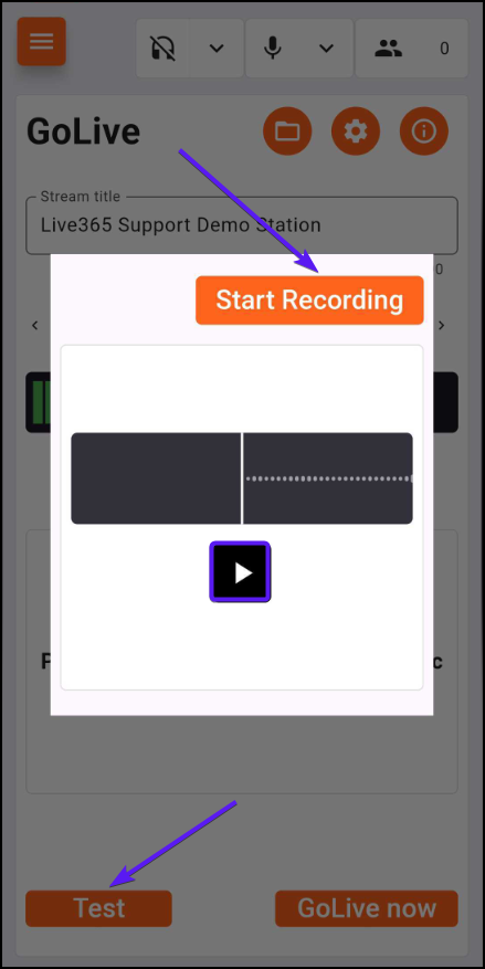 - Tap on Test to make sure the audio-capturing device is working properly. You can do a short recording and then listen to it to ensure the audio quality matches your expectations.