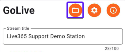 - When your tracks are loaded to the app and you are ready to start broadcasting live, simply tap the GoLive Now button.