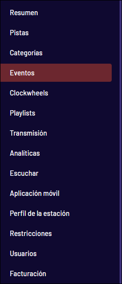 - Desde el menú de la estación, selecciona Eventos en el menú lateral izquierdo.