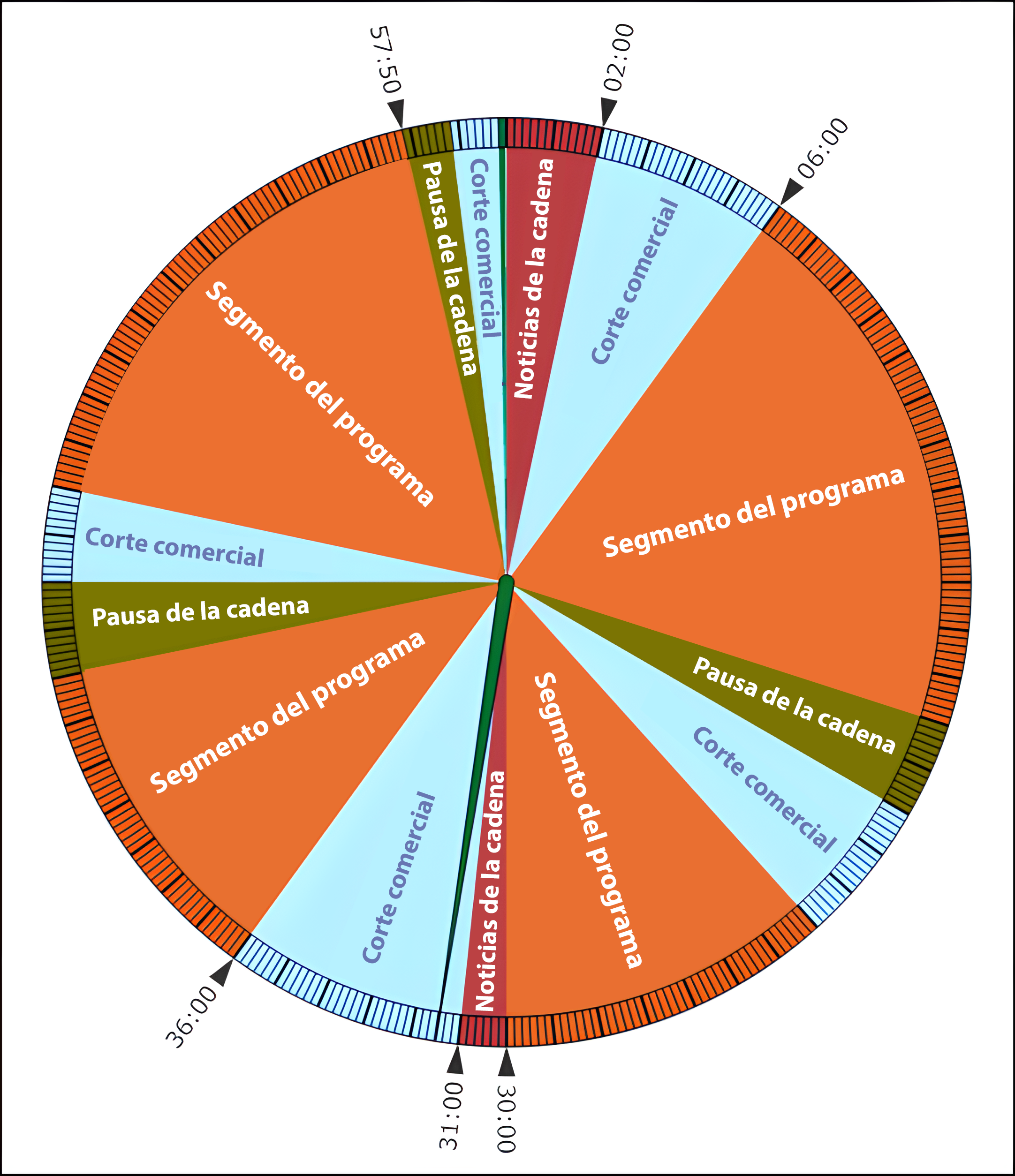 La pista específica que se reproducirá no se selecciona manualmente, pero cada elemento en la línea está predefinido para que la emisora decida qué tipo de pista se reproducirá y cuándo. Una búsqueda rápida en Google Imágenes te mostrará ejemplos visuales de cómo luce una ClockWheel de radio. Este enfoque para la rotación musical asegura que las canciones nuevas ("de moda", "actuales") se reproduzcan en momentos específicos del día. También es una manera conveniente de programar anuncios, jingles, sweepers y saludos.