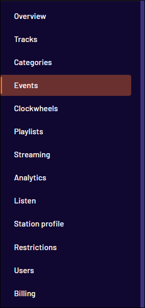 To get started with Recurring Events, select Events from the Station Menu.