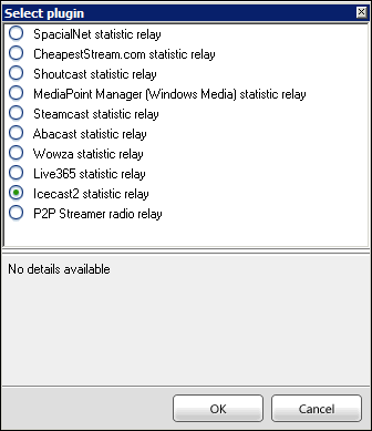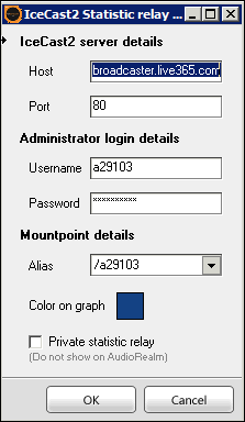 Note: Do not select "Live365" statistic relay, as this is deprecated.
